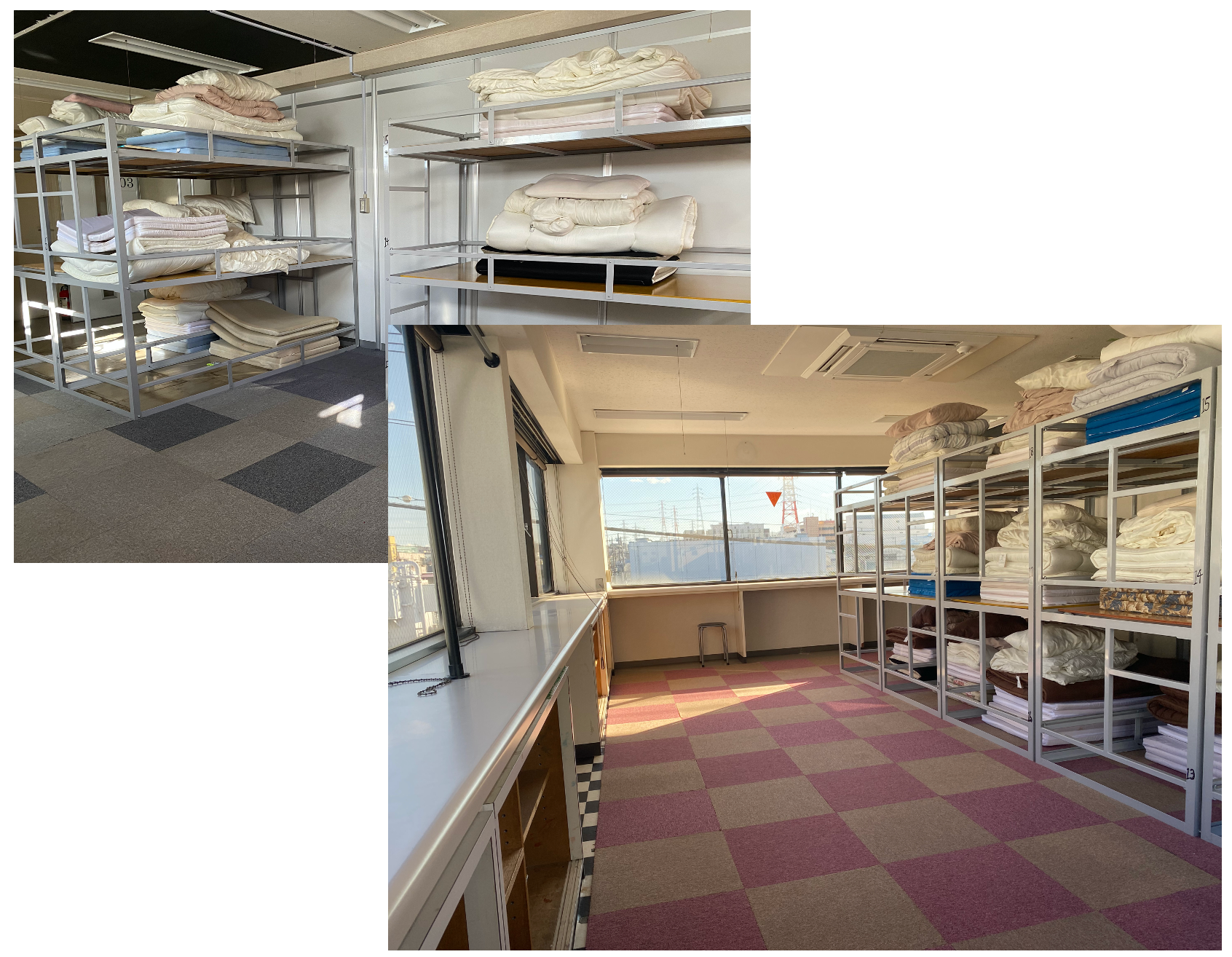 キッチン/シャワー室/物干し/喫煙所/男子トイレ/洗濯機3台